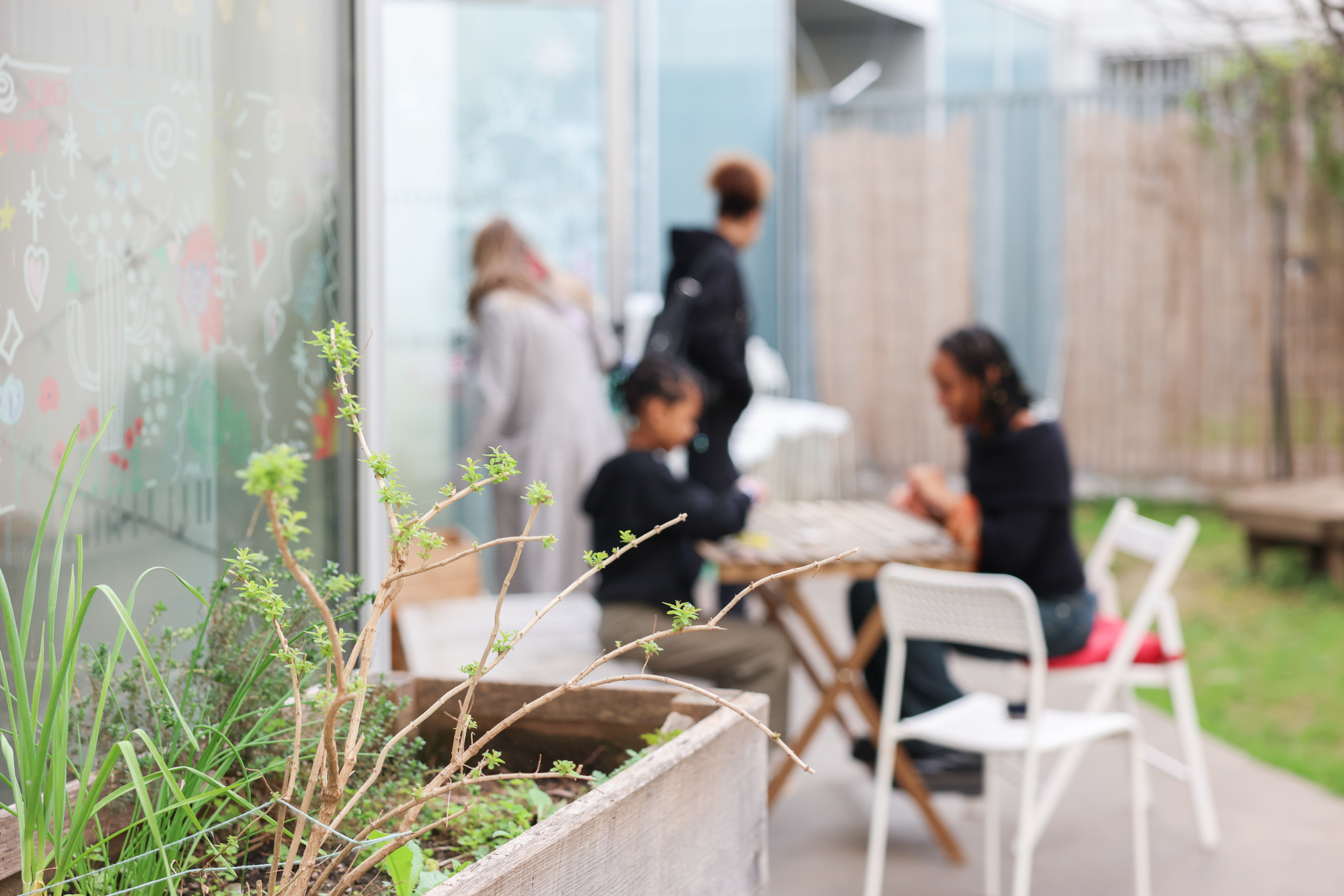 La visite se termine par le jardin “C’est vraiment le petit trésor de Chez Phiphi, on en profite à fond printemps, été et automne : atelier plantations de fleurs, jardinage, bar éphémère…”