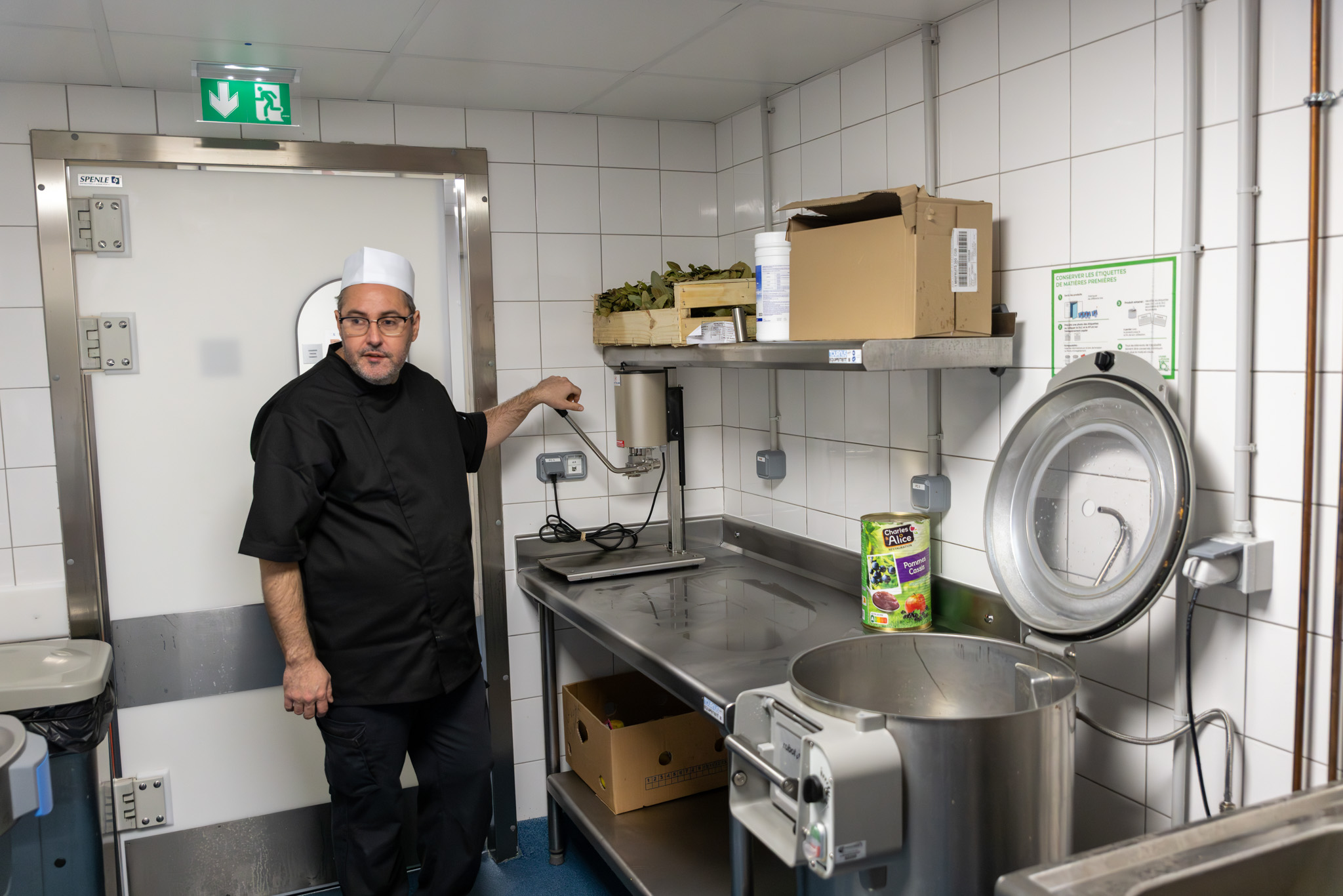 travail, la cuisine est équipée de gants anti-coupure, d’un chariot élévateur
