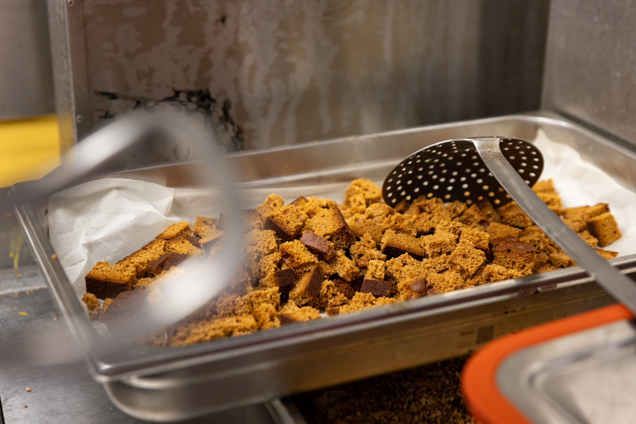 Patrick et son équipe sont fin prêts à faire de cette journée un véritable hommage au goût et à la convivialité. “On reçoit les recettes clés en main, elles sont très bien faites”, explique Patrick. “On fait souvent un essai la semaine précédente pour faire goûter à la diététicienne et au personnel de la Caisse des écoles du 18e.” Les recettes doivent être respectées, mais la créativité reste permise. “On peut toujours ajouter notre petite touche personnelle. Pour la tarte aux amandes, noisettes et bananes, j’ai pris le soin de torréfier les amandes, pour réveiller leur arôme et leur croquant.”