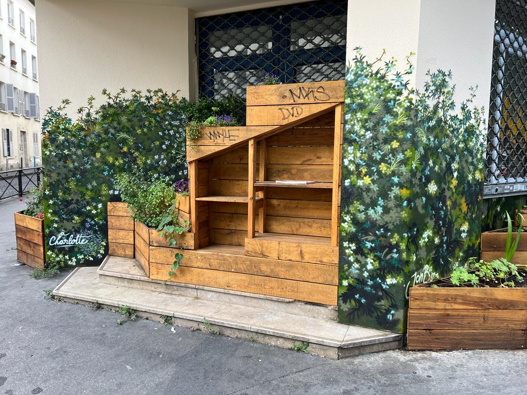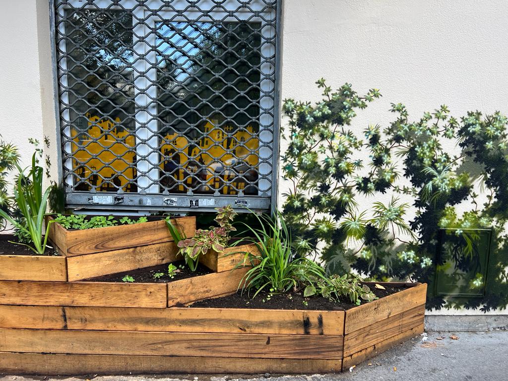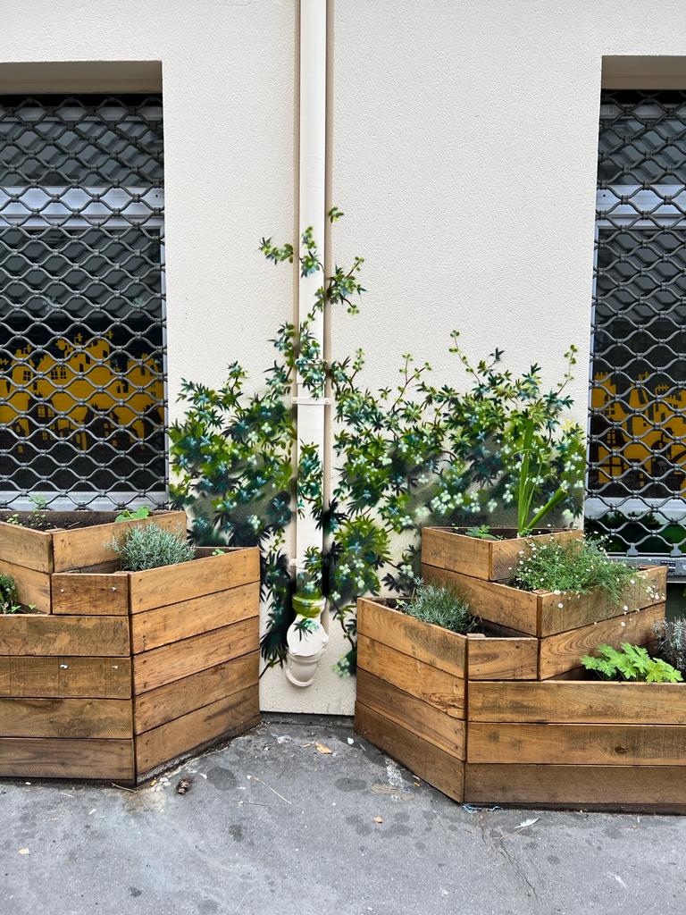 jour, c’est mission accomplie : les habitant.e.s peuvent profiter de la verdure et de la jolie fresque réalisée par l’artiste