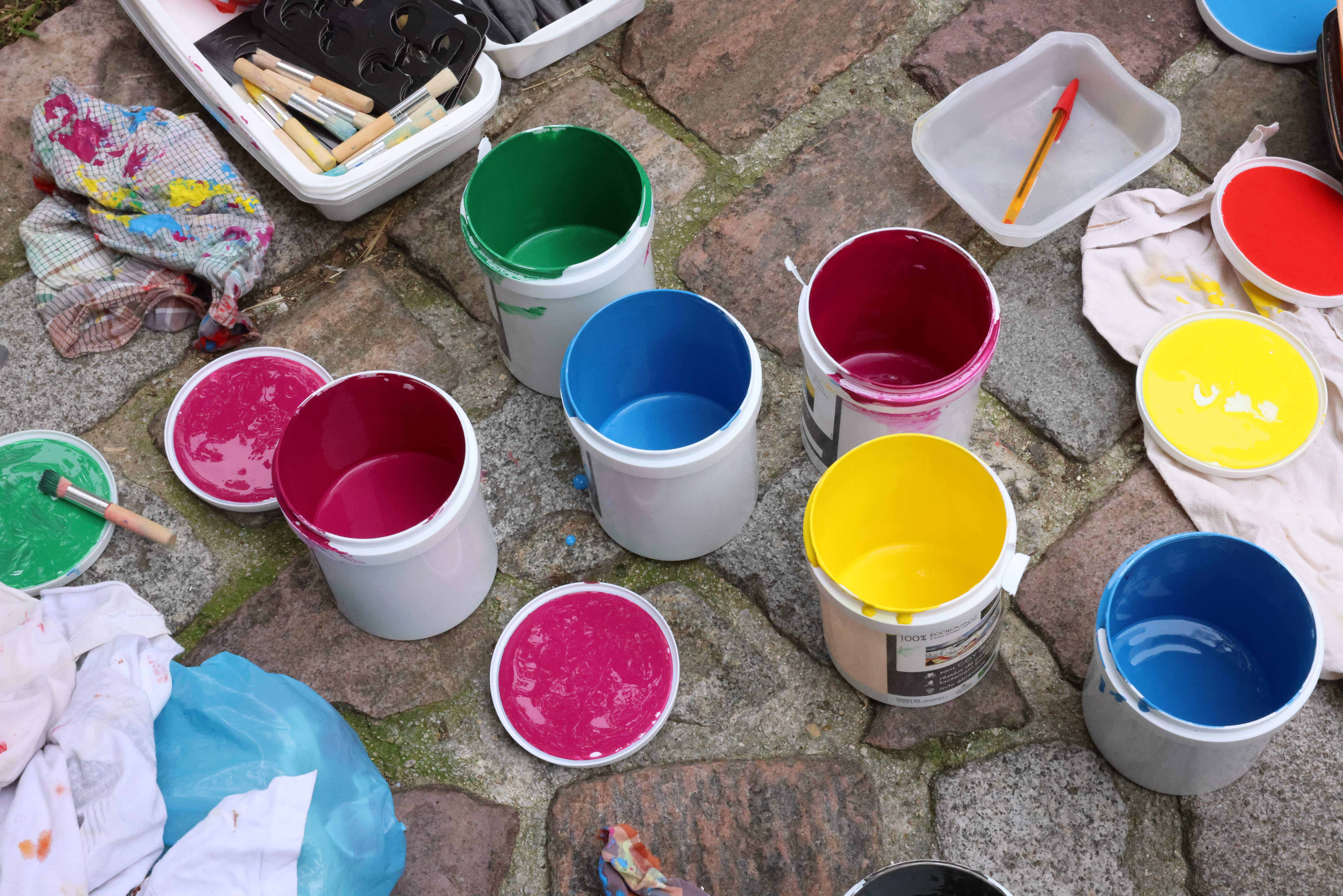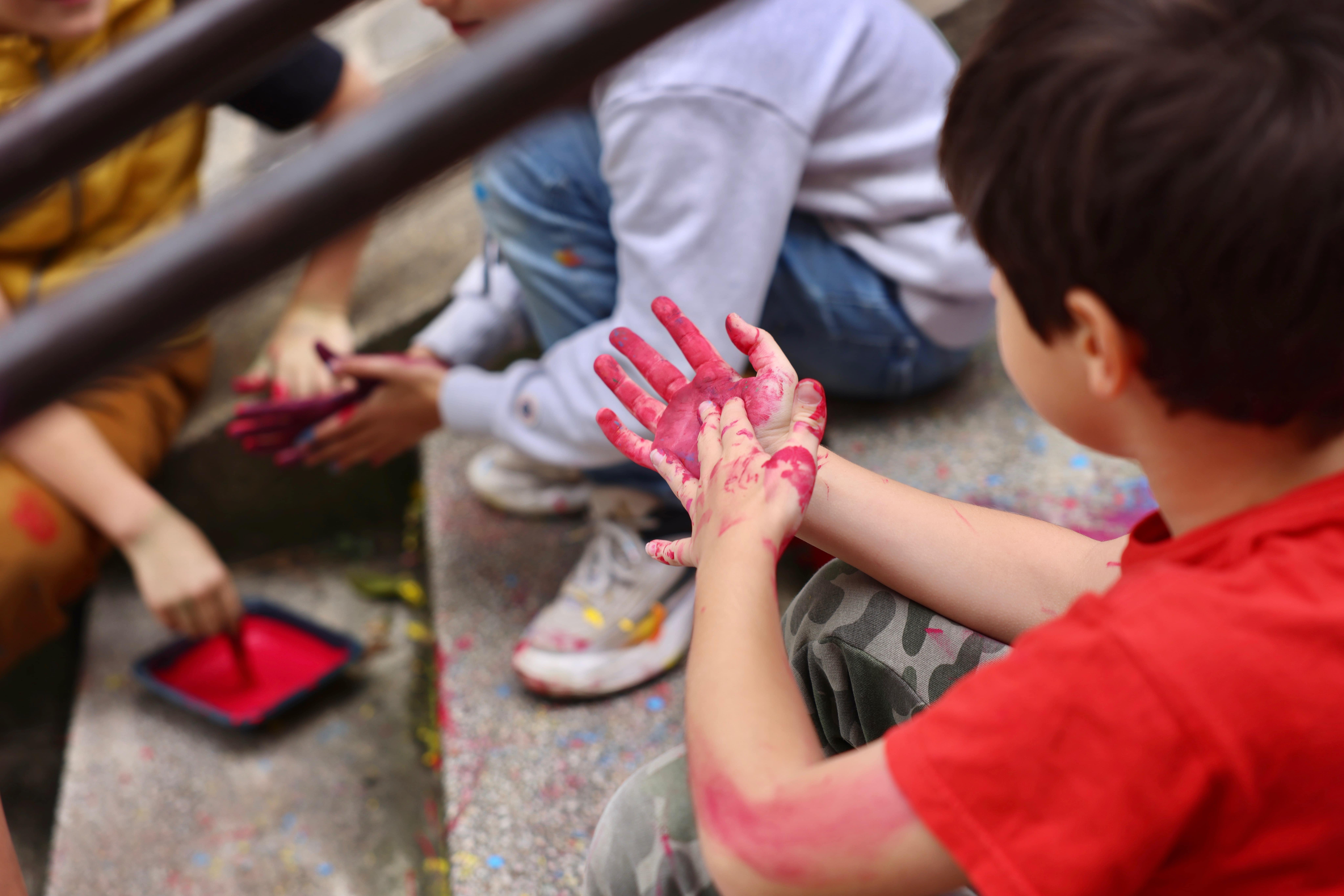 Mais peindre sur des marches irrégulières n’a rien d’évident. Les enfants ont dû adapter leurs gestes, c’est ici une manière concrète d’apprendre que l’art doit aussi composer avec son support.